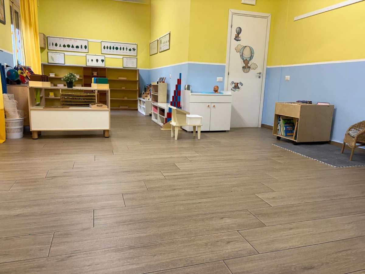 L’ambiente è preparato con oggetti e arredi proporzionati all’età e al corpo dei bambini stessi per permettere loro un’attività autonoma.
